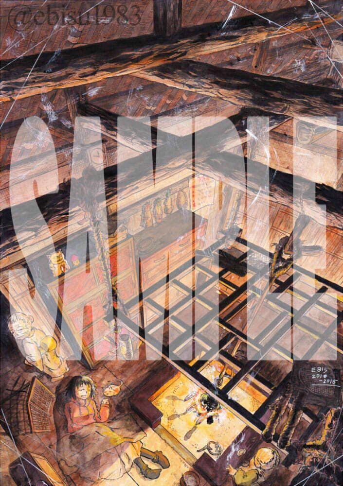 ・ペン画、水彩 ・額装:ヨコ282mm×タテ386mm×厚さ15mm ・額:木目、アクリル板、UV加工なし ・喫煙無し、ペット無し
